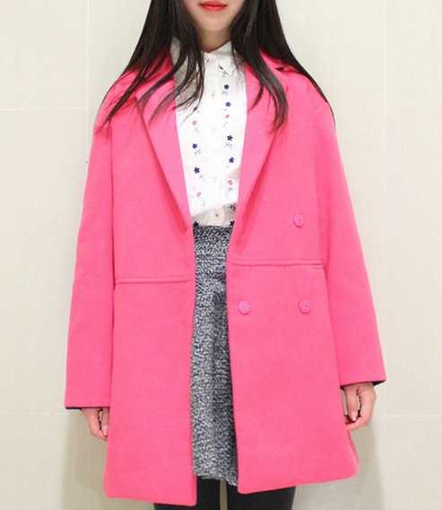韩范十足蜜桃粉毛呢大衣