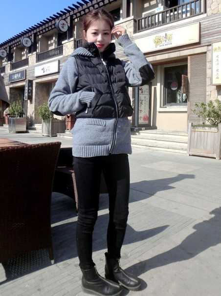 拼色冬季低调灰色棉衣,时尚又不臃肿,轻松穿出显瘦冬日搭配。
