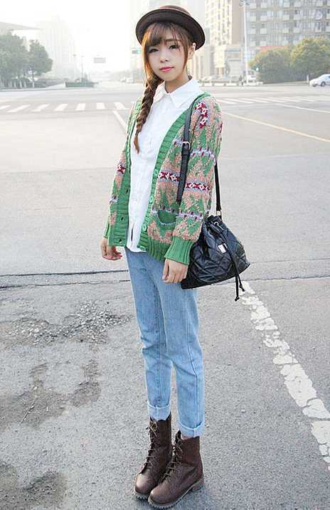 韩范十足的春季针织衫,充满春天气息的糖果绿色,随意搭配简约白色衬衫,穿出清爽小清新感,让你春季时尚感十足。