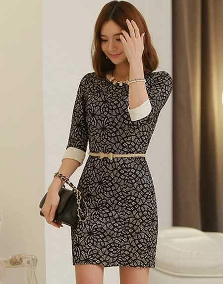 OL通勤款春季黑色蕾丝连衣裙