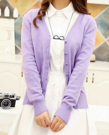 简约大气款的春季糖果紫色开衫,不仅凸显气质,还很显白皙肤色呢!