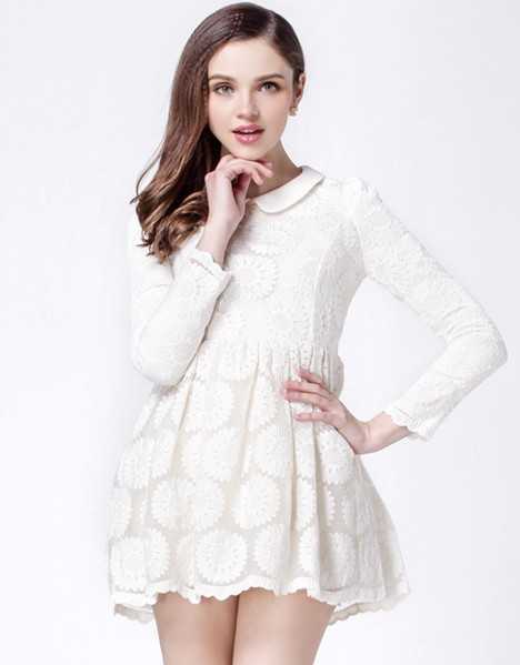 韩版白色连衣裙,甜美蕾丝裙摆的点缀,增添女性柔美的气息,搭配高贵裸色高跟鞋 ,完美秀出高挑好身材,演绎出仙美气质女神范儿。