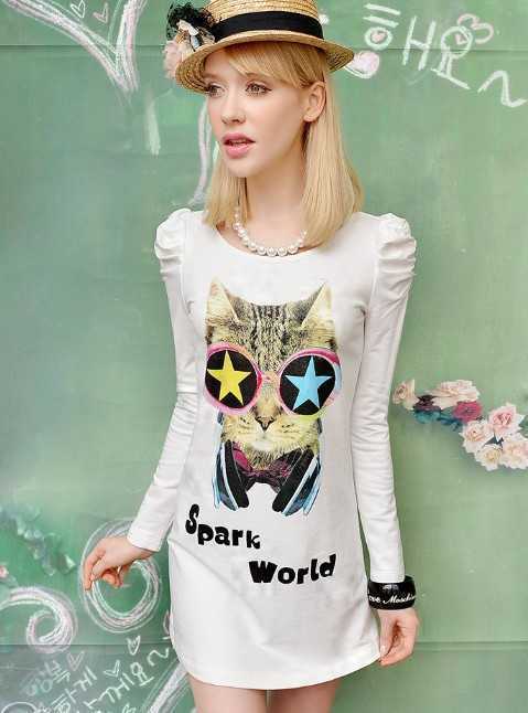小可爱的喵咪图案,凸显出时尚感,显仙美气质的韩版白色连衣裙,轻松穿出时尚不俗气春装。