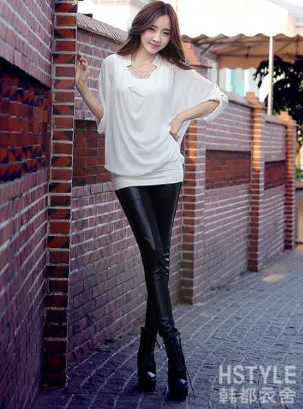 宽松款春季白色雪纺衫,百搭又仙美,搭配帅气黑色紧身裤和黑色靴子,帅酷中又透露优雅气质,轻松让你穿出迷人优雅气质。