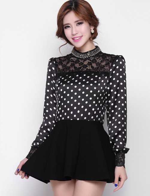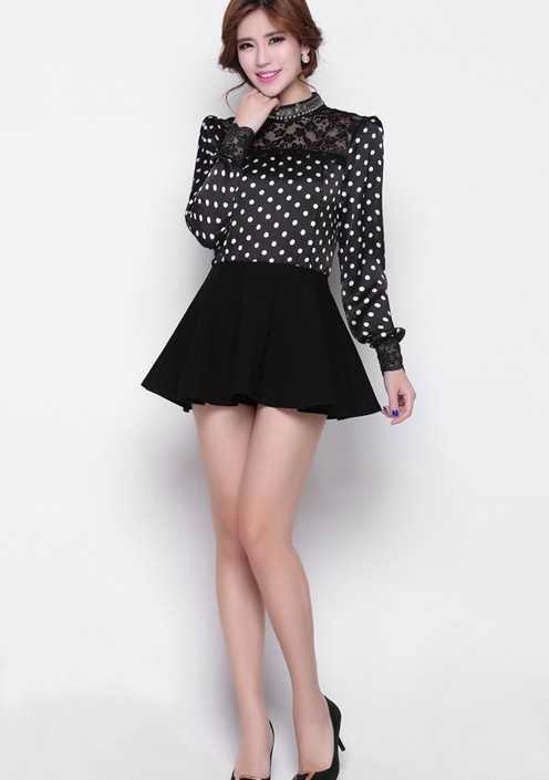 春季黑色小波点套头衫,搭配百搭黑色短裙,完美秀出高挑好身材,搭配优雅黑色高跟鞋,提升迷人女性气质,让你穿出干练优雅范儿,最适合时尚OL们穿着了。