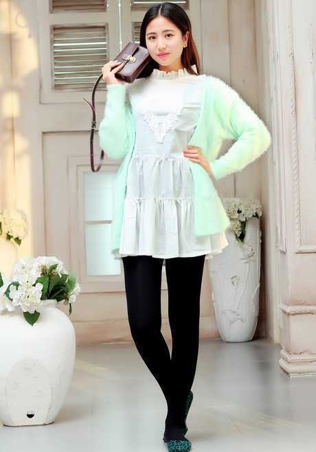 春季白色百褶连衣裙,搭配绿色毛衣开衫,散发出一种扑鼻清香感,搭配显瘦黑色裤子和单鞋,舒适又好看的一身搭配,温婉淑女气质尽展。