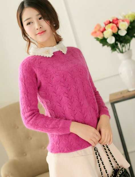 春季娃娃领套头针织衫,粉嫩的冰淇淋枚红色颜色,很减龄喔!