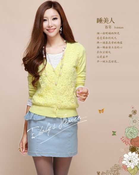 春季黄色蕾丝针织衫,最适合咋暖咋冷的春天穿着了。