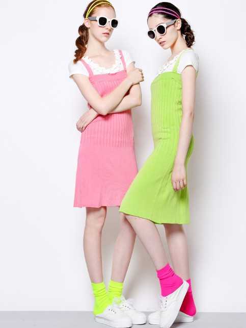 春季糖果绿背带裙,粉绿的颜色很减龄,修身的款式完美凸显出腰身曲线,搭配碎花白色T恤衫,给人一种甜美的感觉,白色帆布鞋配糖果色袜子,显得格外的潮流时尚呢。