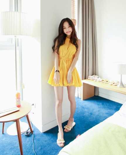 甜美款糖果黄背心连衣裙,显白皙好肤色更显气质,搭配舒适感黄色拖鞋,清爽又好看,最适合温暖的春季穿着了。