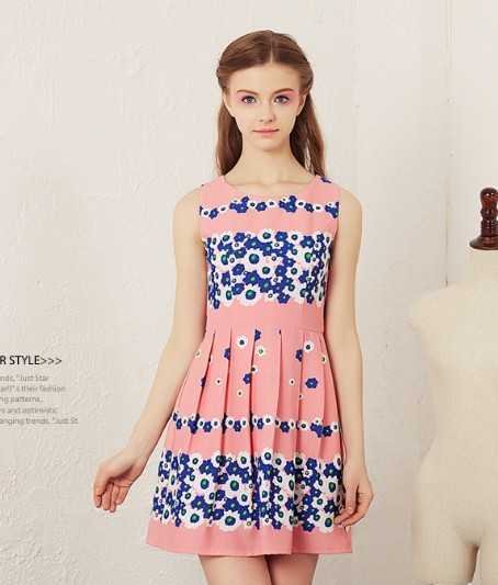 春季背心连衣裙,小清新碎花点缀着,高腰百褶设计,轻松穿出小清新气质。