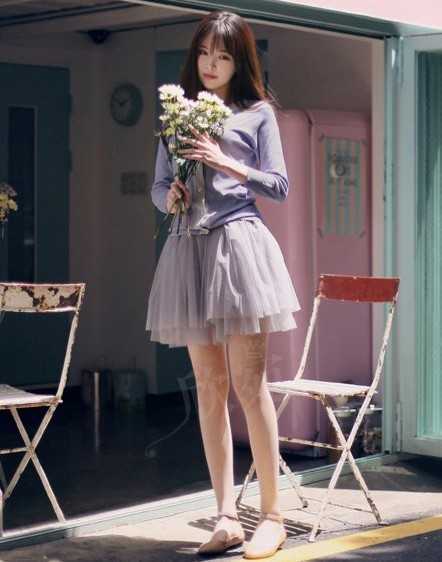 春季紫色高腰短裙,网纱设计更仙美飘逸了。