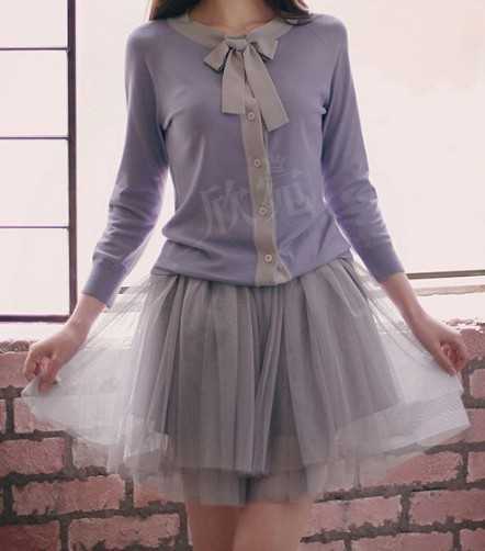 春季紫色小短裙,搭配紫色淑女针织衫,散发出一股迷人优雅的气质,搭配淑女单鞋,这样穿着美翻了。