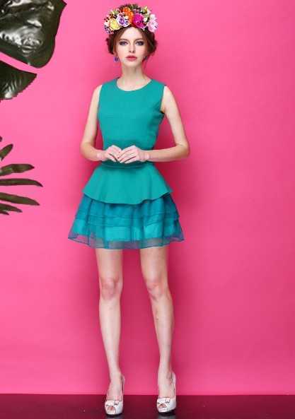 百搭收腰背心裙,很显腰身曲线美,荷叶边裙摆设计,轻松遮肉显时尚。