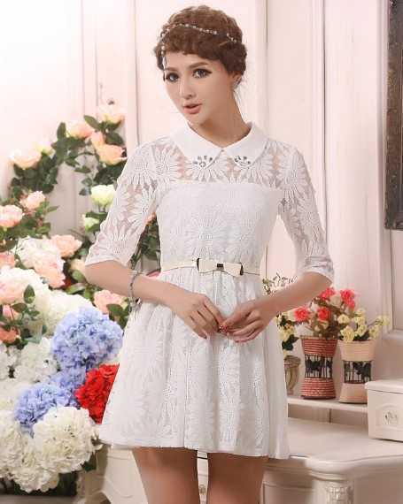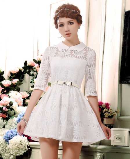 春季白色镂空连衣裙,可爱感的娃娃领,尽展甜美可爱风。