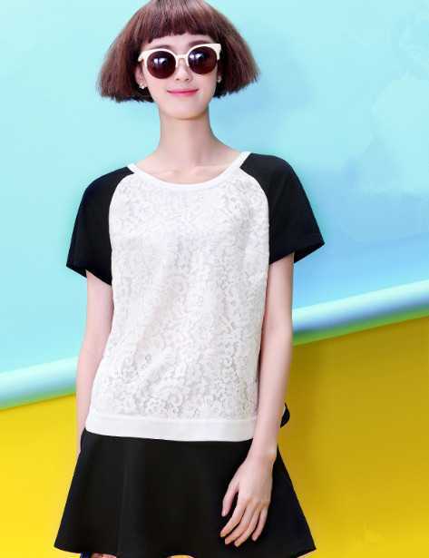 夏季圆领雪纺衫,精美蕾丝点缀,轻松穿出甜美时尚感。