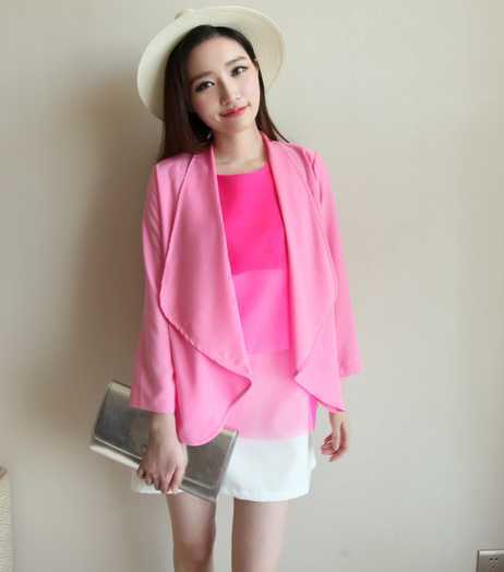 果冻粉红防晒衫,带给人一种靓丽色彩,即使在闷热的夏天也很难不开心喔,超薄款大翻领款式,让你随心搭配同色系裙子,完美蜕变甜美公主。