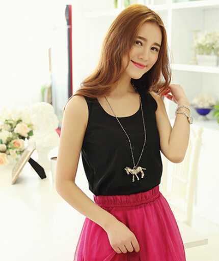 简约大气款背心衫,毫无装饰更能凸显MM的气质美,搭配高腰长款半身长裙,不规则的波浪裙子,随风摇曳,性感女人味完美呈现。