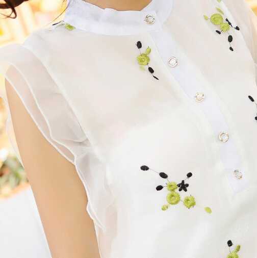 近处看 欧根纱雪纺衫,更加的仙美时尚,高品质的绣花点缀, 完美绽放出缤纷的色彩。