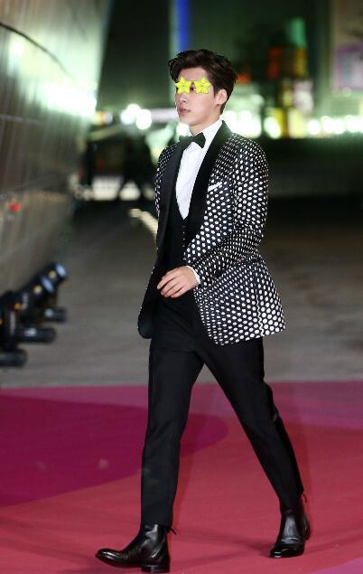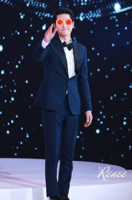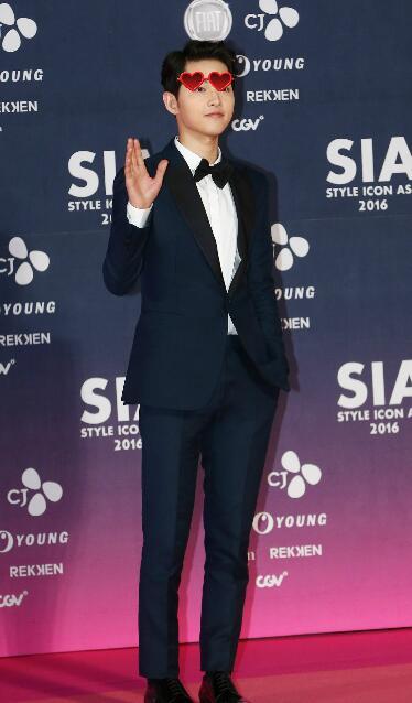 当晚宋仲基以一身黑色西装搭配白色衬衫正装亮相,让宋仲基看起来更为帅气,英姿飒爽。