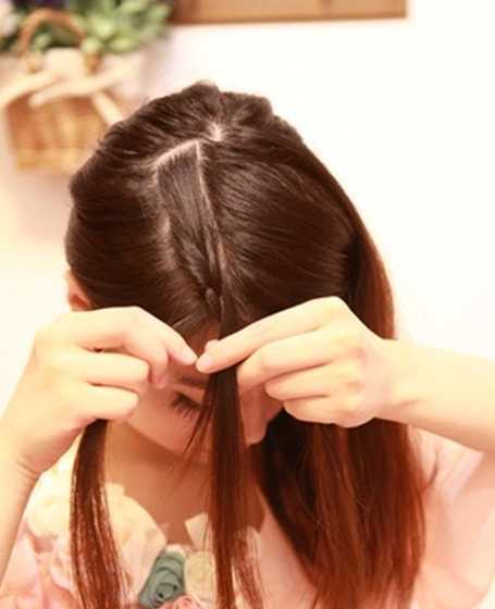 从额头前面开始进行编发,编成三股辫,一般可以编得稍微松一点,不过如果你的是碎发就不建议编得太松咯。