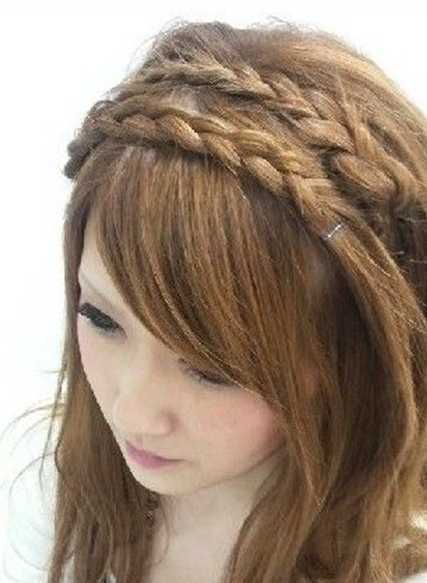 再在同一侧编一条麻花辫,编好后也是绕过头顶哦,记住要分开绕,而两条辫子最好平行哦,还是用夹子固定好哦。