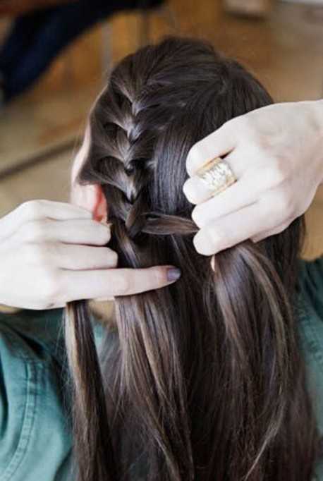 步骤三:编的时候要将刘海一起放进来编,编出来的效果大概是这样子,注意,在编的时候力度要差不多,这样编出来的麻花才会差不多。