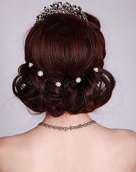韩国最流行的新娘编发盘发,从后面看上去,这款新娘编发盘发真是非常有特色的,卷卷的弧度,看起来超美,装饰上发饰,就更添时尚感咯!