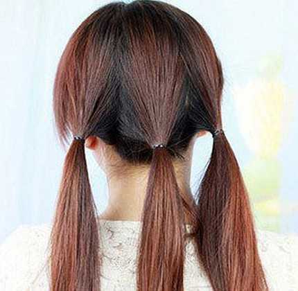 步骤一:首先将头发分成三股,然后用胶圈绑起来,扎的马尾可以稍微低些,这样到时候盘起来就会显的甜美优雅。