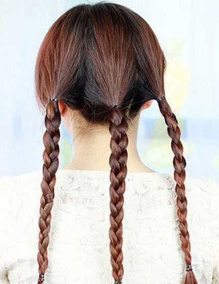 步骤二:将扎好的三股马尾按照普通的麻花辫编发编起来,就如图所示。