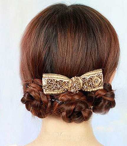 步骤五:再用好看点的发卡固定好,添加一些自己喜欢的发饰,这样一款简单又甜美的韩式小清新编发就完成!