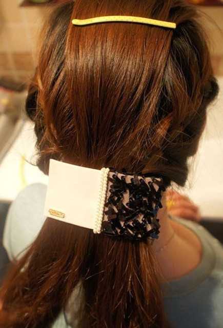 步骤五:不喜欢把头发放在左边肩上,也可以放在后面,用自己喜欢的发卡固定好就OK!
