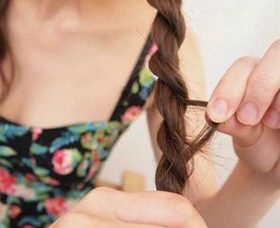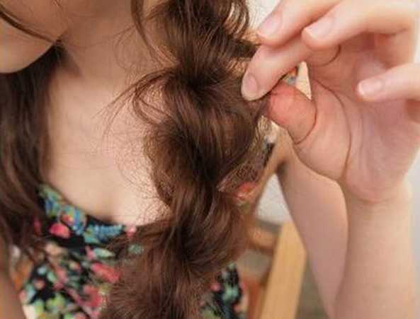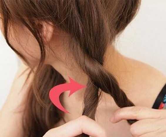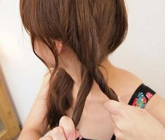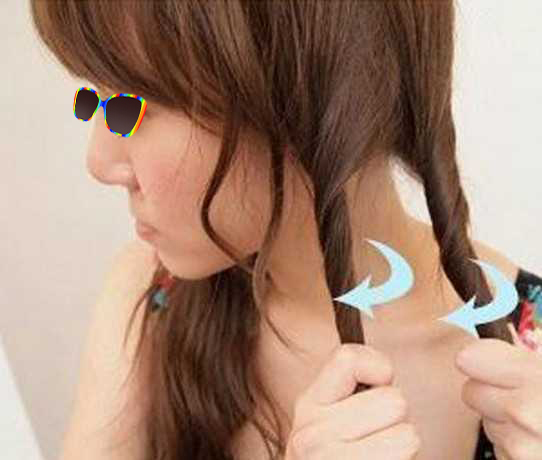 Step2:将一边的头发分成两份,然后就扭转起来。
