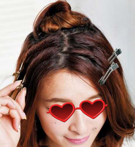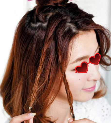 Step3:将编好的发辫拉倒后方用夹子固定在头顶,将后面头发松开,这样就完成了这款刘海编发。