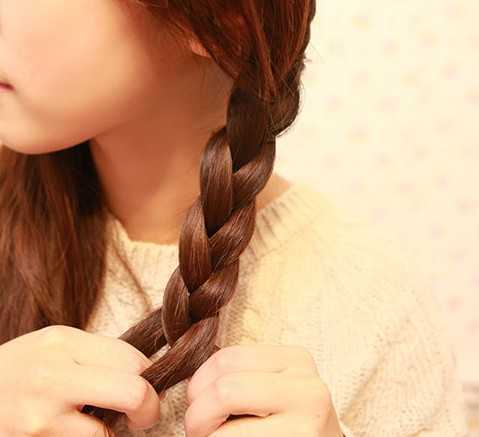 将头发分成两份,首先将其中一份头发编成三股辫。