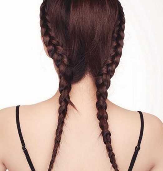 3、同样耳边加辫法,将另外侧的头发,以同样的方法编到发尾处。