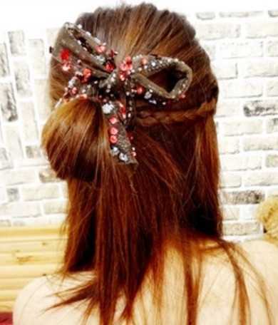 步骤九:带上发饰,这个发型很简单的,多了辫子和发饰就不会显得那么单调了。