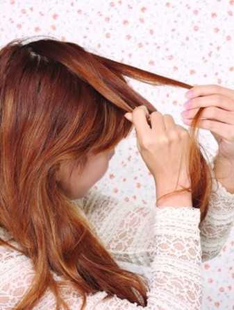 步骤一:在头顶上选出三束头发,往下斜拉,编出一条三股辫。