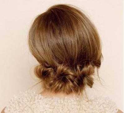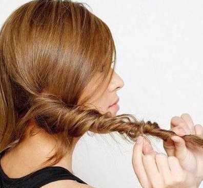 步骤三:将后边的那份头发顺时针拧转,不要太紧,最后用小发圈固定发尾。