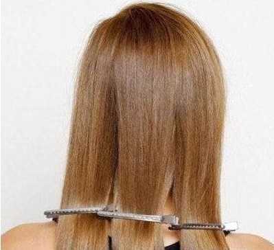 步骤二:将所有的头发都向后梳,然后将头发平均分成三份,并且用夹子夹住,以免混乱。