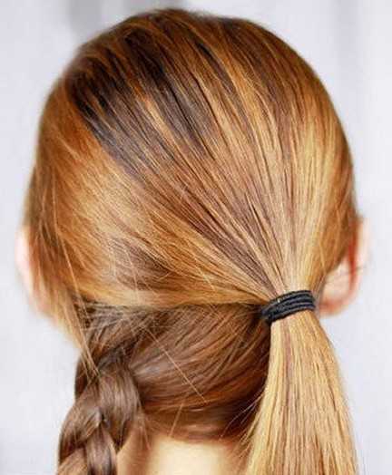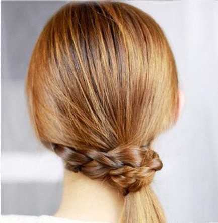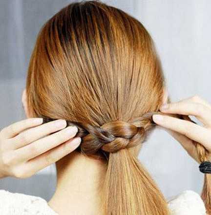 步骤二:按顺时针方向用麻花辫绕着马尾,直到绕完,再用一次性夹子固定好。