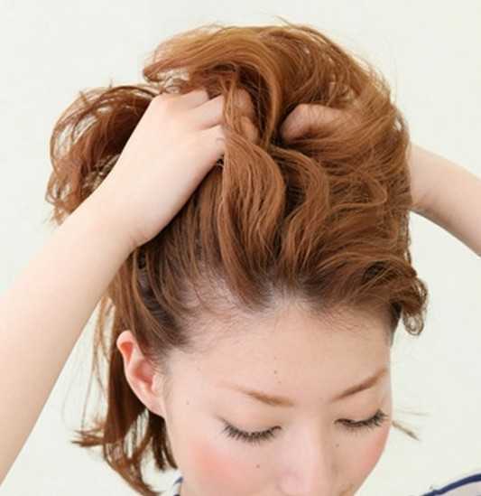 2、用双手把整个刘海和两侧的头发往后抓起,营造出蓬松效果。