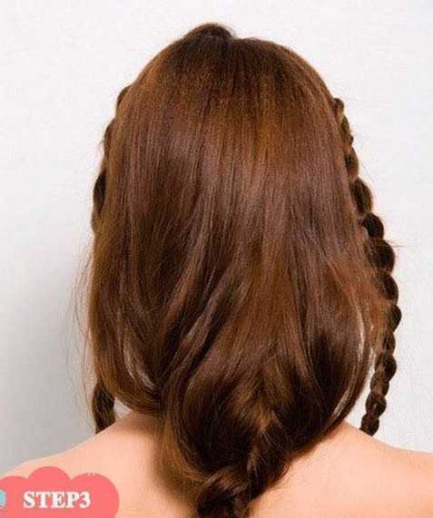 2、而另外一侧的头发也按照同样的方法,进行编织为简单的三股发辫。