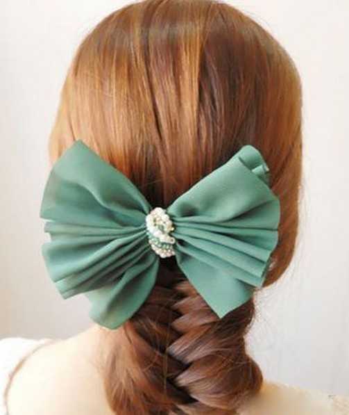 7、最后在编发开始处加入一个大大的蝴蝶结发饰,就这样简单的鱼骨辫编发完工了,是不是看起来相当优雅清爽呢?小编也忍不住要赞一个哦!