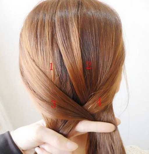 2、取右边最侧的一小束头发标记4,而左边最侧的发束标记为3。