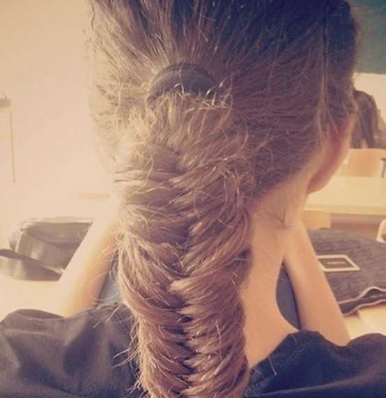 如果你觉得马尾辫显得有些单调沉闷,那就不妨一试这样的蓬松鱼骨编发发型,松散的发丝,显得造型感十足了,就这样简约的编发却是给人一种韩系清新气息,赞一个!