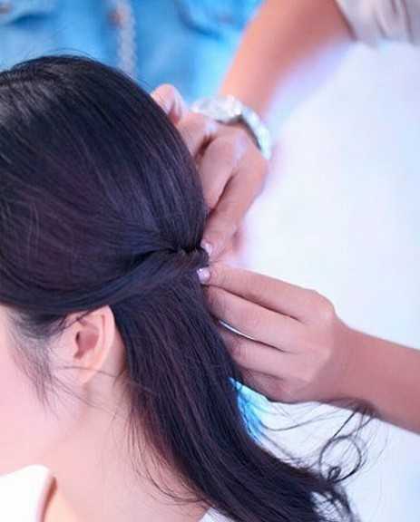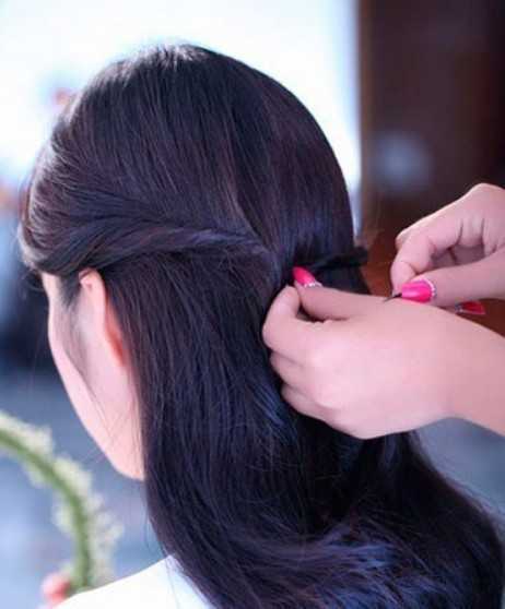 4、而右侧采取同样的方法,扭转小发束后固定。