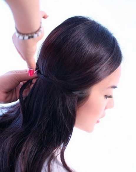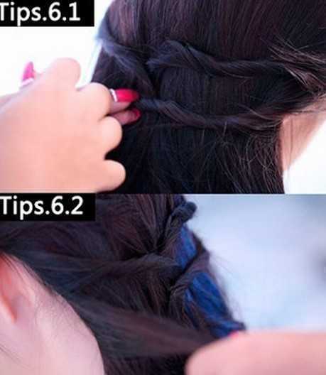 6、接下来按照以上的步骤,再次选择左右两侧头发进行扭转并固定好,一直扭转到最后即可。