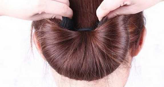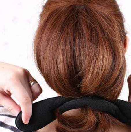 3、再把马尾卷成花苞头形状。