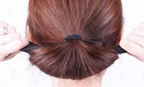 4、把两端的发圈集合在一起,这样花苞头就更加稳固了。